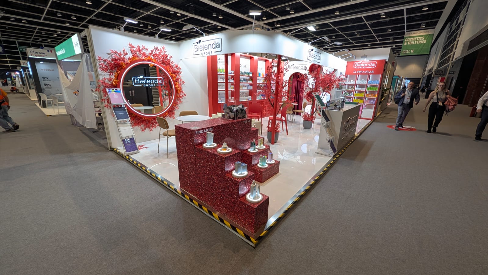 Bielenda’s stand, as every year, was a true highlight of the exhibition. Designed in a distinctive white and red color scheme, with striking red-painted plant installations, it immediately caught the attention of visitors and stood out from the competition. It was more than just a booth – it was a visually impactful space that perfectly reflected the brand’s identity.